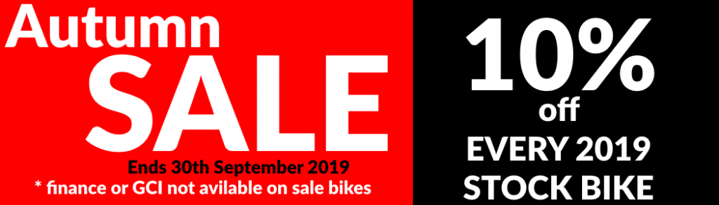 EVERY 2019 stock bike in our Worcester store is being offered at a 10% discount.