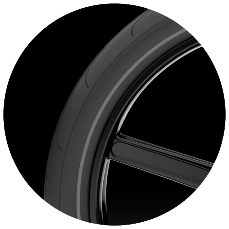MotoGP-inspired treaded tyre infused with silica compound for superior grip and sure-footed handling.