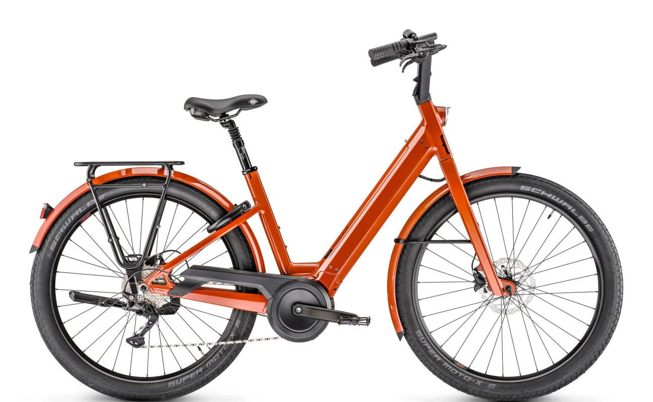 Undoubtedly, the Lundi 27.3 is all about style and comfort, all in one. The world famous Moustache raised handlebar offers an upright and secure position. A suspended seat-post to absorb shocks and wide forgiving Selle Royal Hertz Gel saddle really add to the experience. Schwalbe 27.5×2.4 Super Moto-X tyres absorb every bump and hollow. There’s no need for suspension forks on this gem! Designed for easy on and off, the angular open frame is easy to step through. The rear rack comes ready to accept any ORTLIEB pannier, the world’s best, with integrated QL3 mounts to attach Moustache ORTLIEB panniers in one click. The frame lock under the seat-stays allow the bike to be secured when left unattended and prevents opportunistic theft.