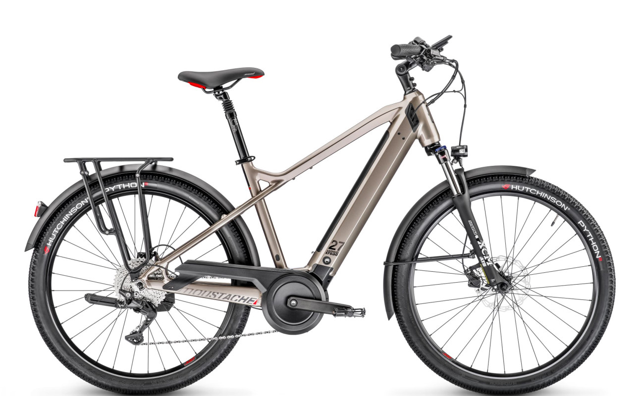 The all round nature of the 27.5″ tyre is at the heart of the Xroad 3. Fit a pair of Hutchinson Python tyres sporting a plethora of mini studs, and the end result is a tyre with excellent roll but with equally good comfort and traction. Hard tarmac roads, railway cuttings, canal tow paths and loose ground are easily dealt with. It’s strong too. With Moustache exclusive 27.5″ wheels (23mm wide) double cavity welded asymmetrical rims, the Xroad 3 can deliver great performance.