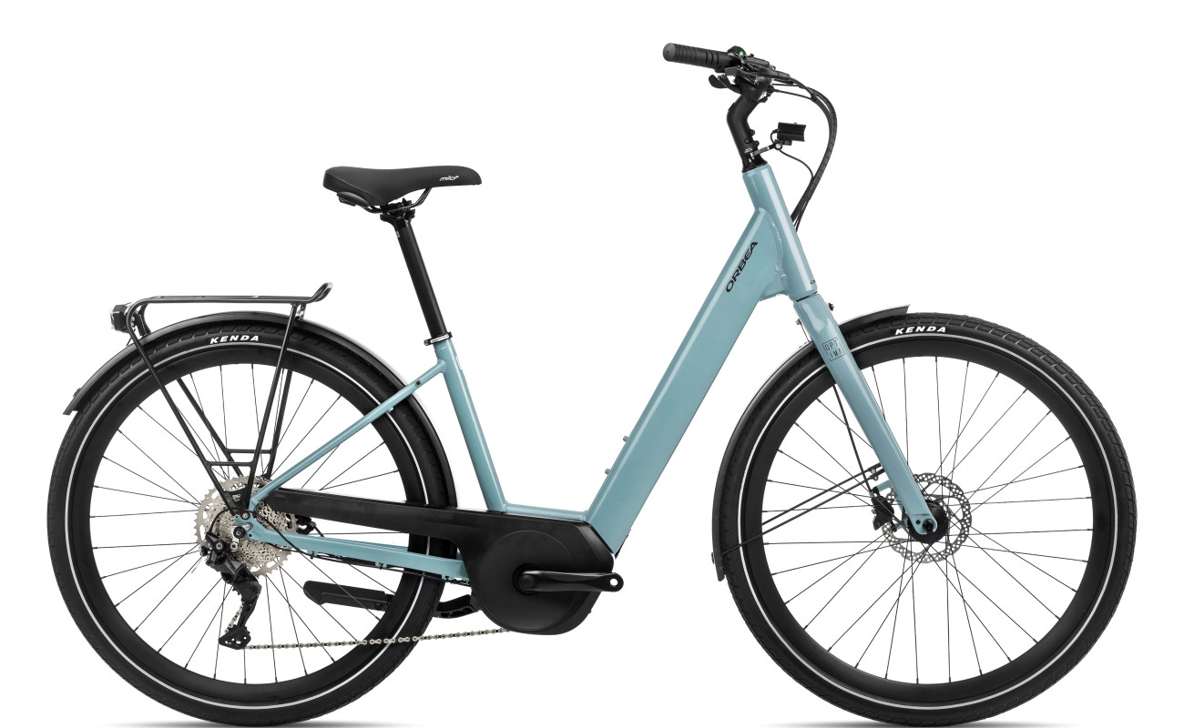 With three levels of assistance, the ORBEA Optima E40 is a real joy to ride and very flexible. Head winds and hills need not be quite so draining as they could be. A simple mode button sits on the top tube, allowing the rider to change assist modes as well as turn the bike on and off. Different colour modes show which level is current.