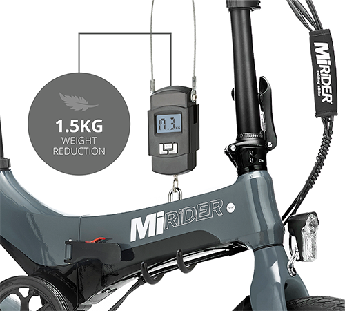 The MiRider One folder is a 16″ wheel, fully folding electric bike. It weighs in at around 17kg and packs a real punch thanks to its powerful motor!