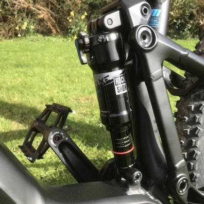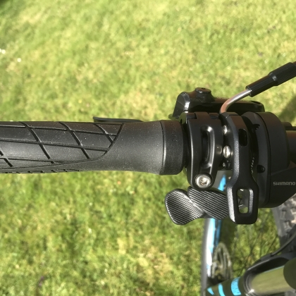 The power switch sits neatly on the top tube, with a press and short hold to fire the bike up. The second thing that strikes you is the power. It’s delivery is smooth and uninterrupted. It’s very agile too, and feels it. The Shimano E8000 is lighter than the Bosch and has a shorter length chainstay so it’s more compact. There’s three levels of power, each changed via a set of rapid fire shifters on the left of the bars. Neat. They sit unobtrusively, adjacent to the dropper seatpost lever and are all within easy reach.